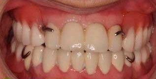 La parte fija pueden ser coronas de metal-cerámica o circonio y la parte removible de metal-resina.