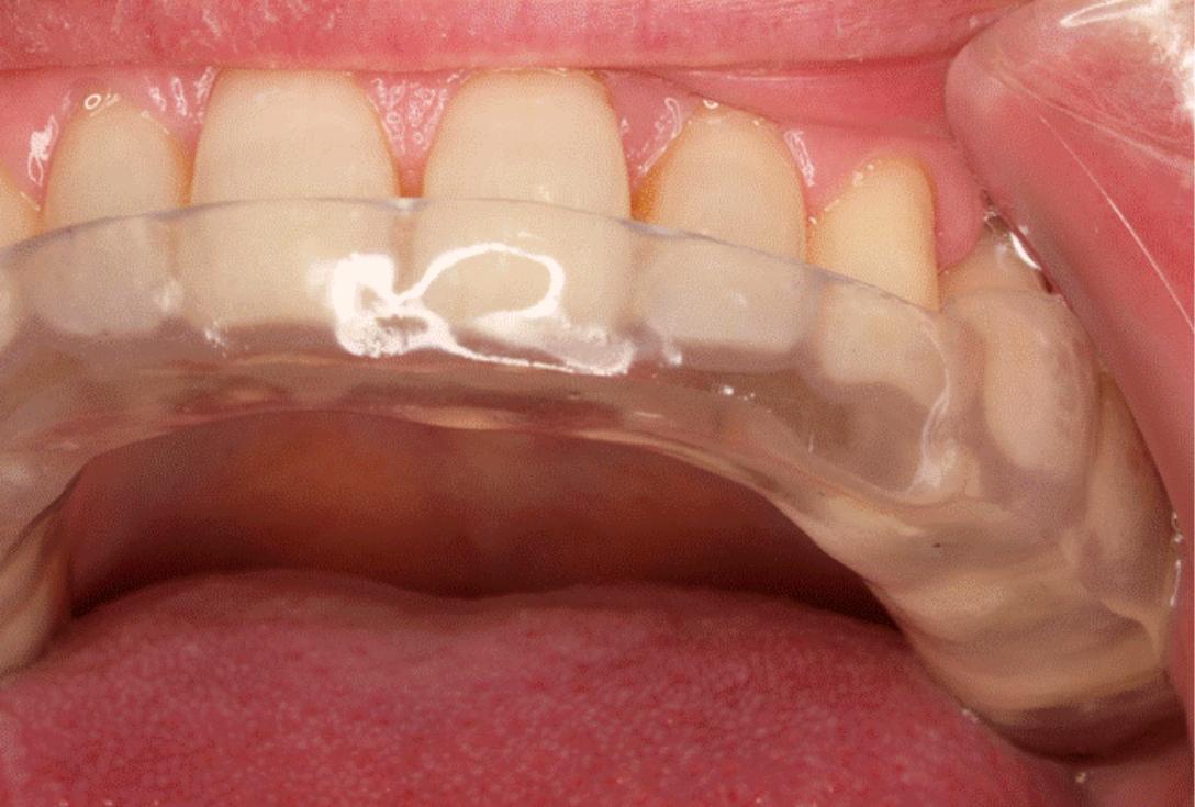 La férula de descarga es un tipo de dentadura que encaja en los propios dientes del paciente hecha de resina acrílica transparente que se realiza a medida para cada paciente.